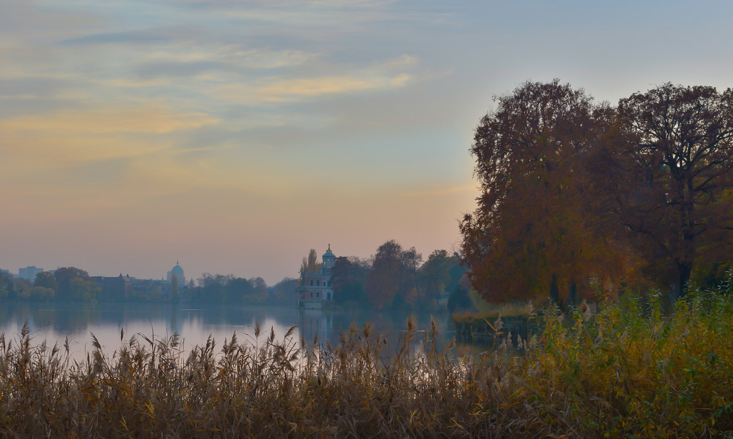 Blick über den Heiligen See auf das Rote Haus