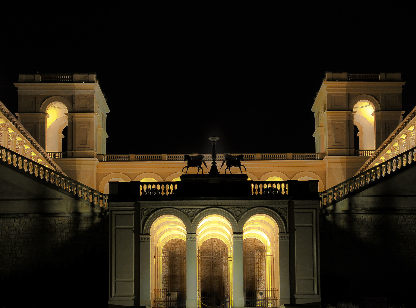 Das Schloss Belvedere während der Mondnacht, Kollonadengang